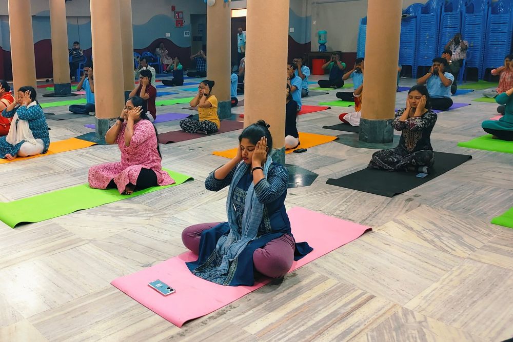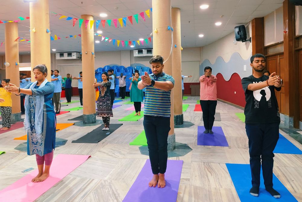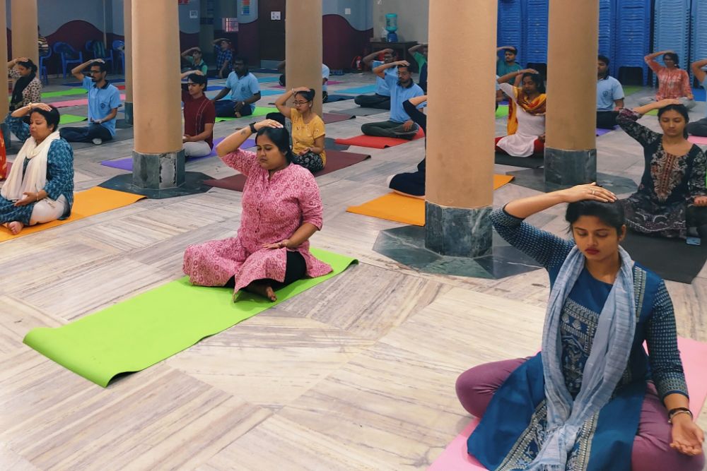 We are thrilled to share the uplifting experience of Integrated Amrita Meditation (IAM) at Bharatiya Vidya Bhavan Institute of Management Science, Kolkata for both their teachers and students. The IAM20 session, led by Bri Niseema, an IAM Instructor from Amrita University, provided a blend of meditation along with simple stretches to relax the body, creating a harmonious journey towards inner peace and well-being.