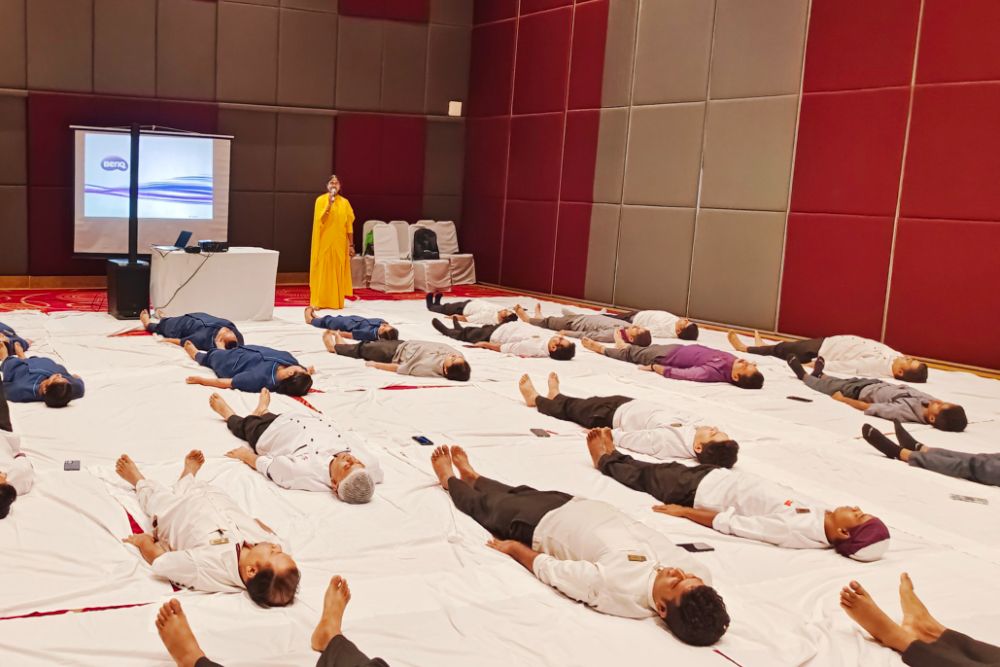 The resort staff was introduced to IAM20, a meditation technique created by Sri Mata Amritanandamayi Devi Amma. This technique is scientifically proven to lower stress hormones like adrenaline and cortisol within just 48 hours of practice, making it especially valuable for those working in high-pressure environments like hospitality.