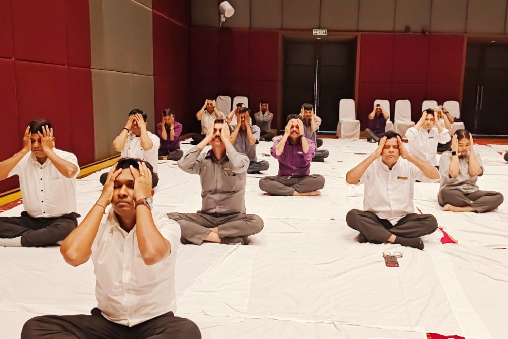 At the request of Mr. Anand Chatterjee, Head of Hospitality at Planet Hollywood Beach Resort Goa, the Integrated Amrita Meditation Technique (IAM20) Stress Management Leaders Workshop was organized for their staff by Amrita Vishwa Vidyapeetham. A group of dedicated managers, assistant managers, senior executives, associates from the department of reservations, engineering, security, sales, purchase, front office, accounts, professional chefs, spa therapists, and yoga teacher from the resort participated in an enriching workshop.